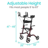 The Vive Upright Walker is a compact mobility aid designed with your comfort and safety in mind. Its adjustable high grip design allows for more control and less strain, as you will never have to lean down to operate the walker.