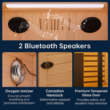 The sauna is constructed from premium Canadian Hemlock wood, known for its durability, moisture resistance, and natural aesthetics. It also features a tempered glass door that is heat-retaining, scratch-resistant, and explosion-proof.